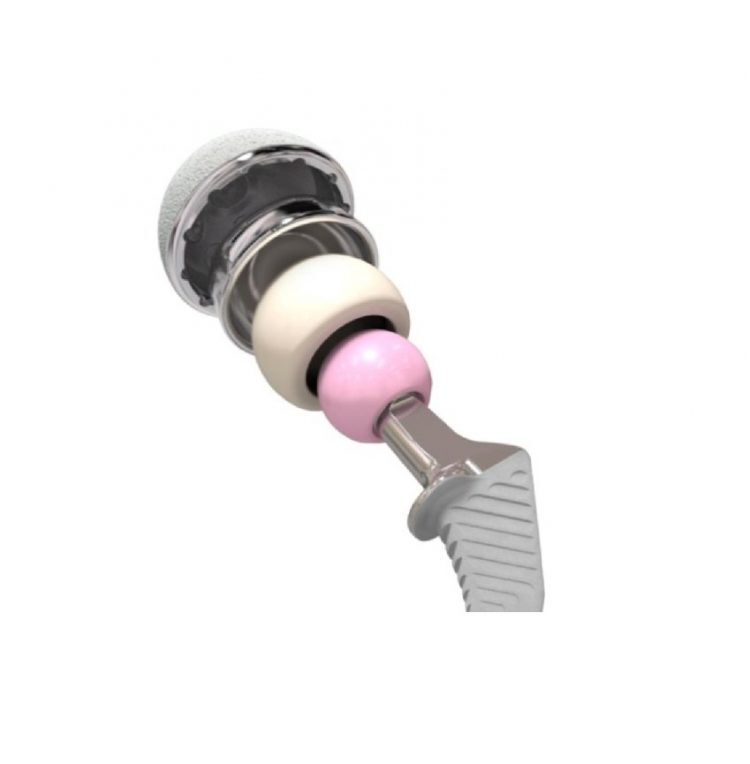 • Two articulations: large outer bearing + smaller inner ball (ceramic or metal)